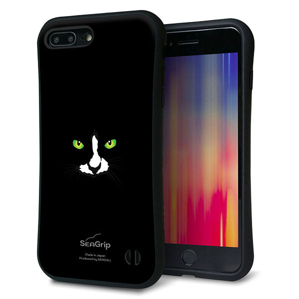 iPhone8 PLUS スマホケース 「SEA Grip」 グリップケース Sライン 【398 黒ネコ】 UV印刷