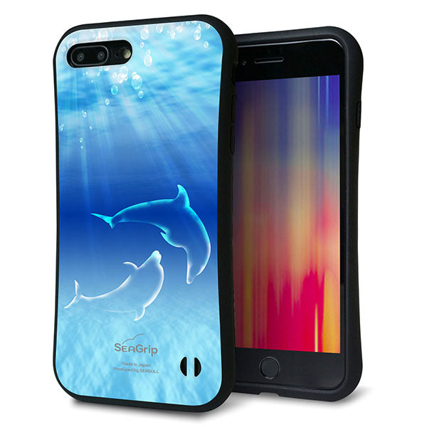 iPhone8 PLUS スマホケース 「SEA Grip」 グリップケース Sライン 【1048 海の守り神イルカ】 UV印刷