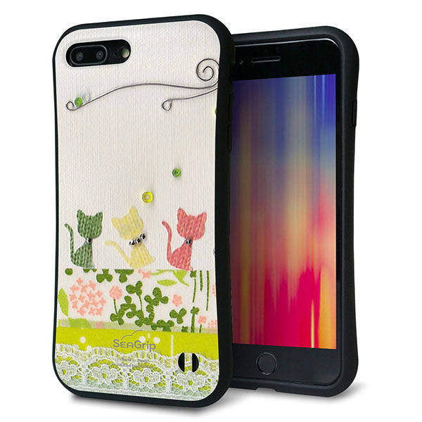 iPhone8 PLUS スマホケース 「SEA Grip」 グリップケース Sライン 【1106 クラフト写真 ネコ (ワイヤー2) 】 UV印刷