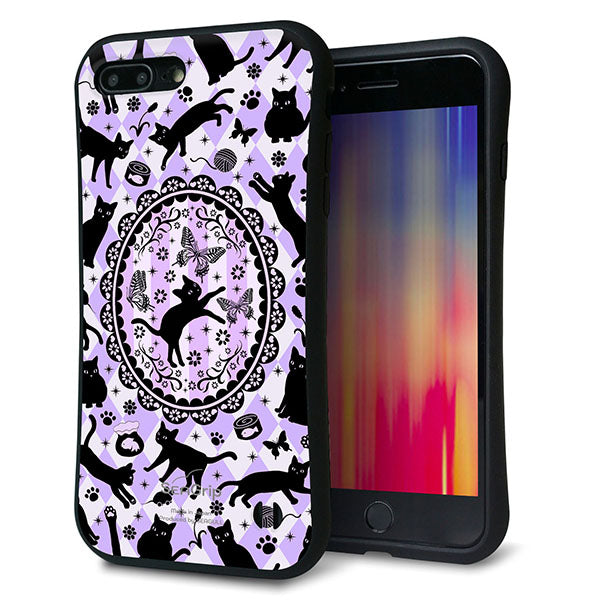 iPhone8 PLUS スマホケース 「SEA Grip」 グリップケース Sライン 【AG879 ネコがいっぱいダイヤ柄 パープル】 UV印刷