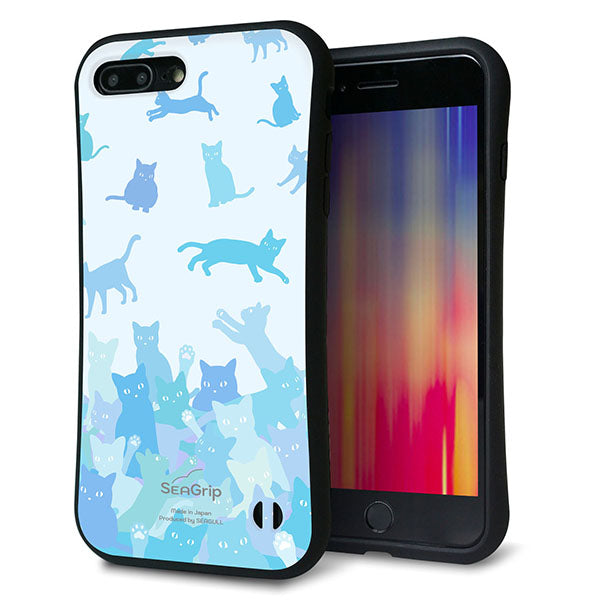 iPhone8 PLUS スマホケース 「SEA Grip」 グリップケース Sライン 【AG888 ネコ積もり 水色】 UV印刷
