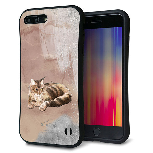 iPhone8 PLUS スマホケース 「SEA Grip」 グリップケース Sライン 【HA173 メインクーン+くすみカラー】 UV印刷