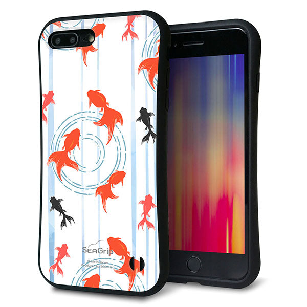 iPhone8 PLUS スマホケース 「SEA Grip」 グリップケース Sライン 【HA210 金魚 水彩ストライプ ブルー 】 UV印刷