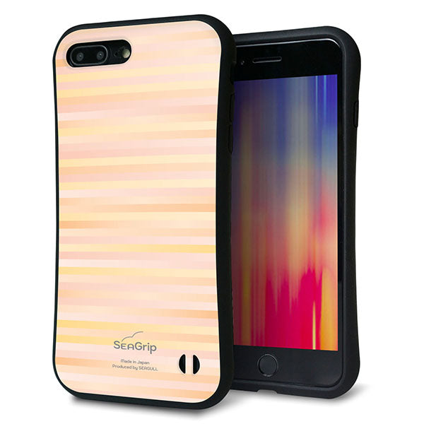 iPhone8 PLUS スマホケース 「SEA Grip」 グリップケース Sライン 【IB909 グラデーションボーダー_オレンジ】 UV印刷