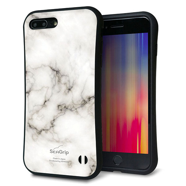 iPhone8 PLUS スマホケース 「SEA Grip」 グリップケース Sライン 【KM871 大理石WH】 UV印刷