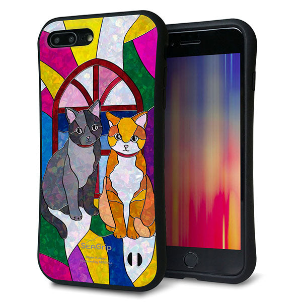 iPhone8 PLUS スマホケース 「SEA Grip」 グリップケース Sライン 【MA995 ステンドグラス ネコ】 UV印刷