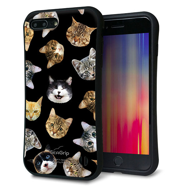 iPhone8 PLUS スマホケース 「SEA Grip」 グリップケース Sライン 【SC933 ねこどっと ブラック】 UV印刷