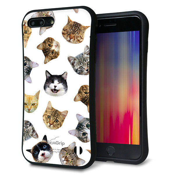 iPhone8 PLUS スマホケース 「SEA Grip」 グリップケース Sライン 【SC937 ねこどっと ホワイト】 UV印刷