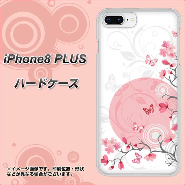iPhone8 PLUS 高画質仕上げ 背面印刷 ハードケース【030 花と蝶(うす桃色)】
