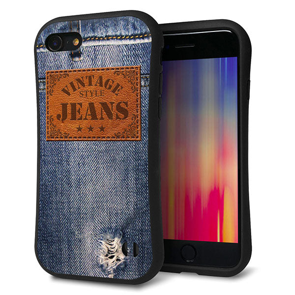 iPhone SE (第2世代) スマホケース 「SEA Grip」 グリップケース Sライン 【SC921 ダメージデニム レザータグ】 UV印刷