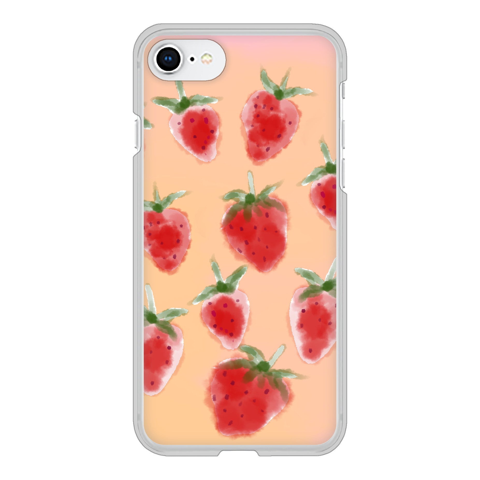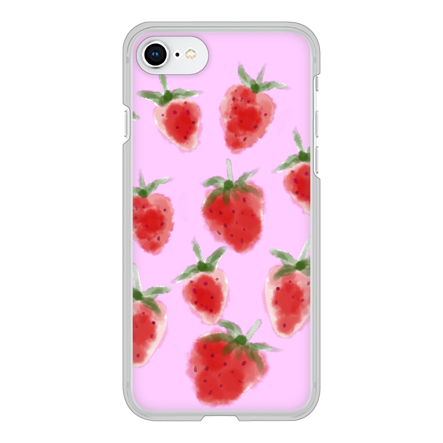 iPhone SE (第2世代) 高画質仕上げ 背面印刷 ハードケース イチゴ 水彩