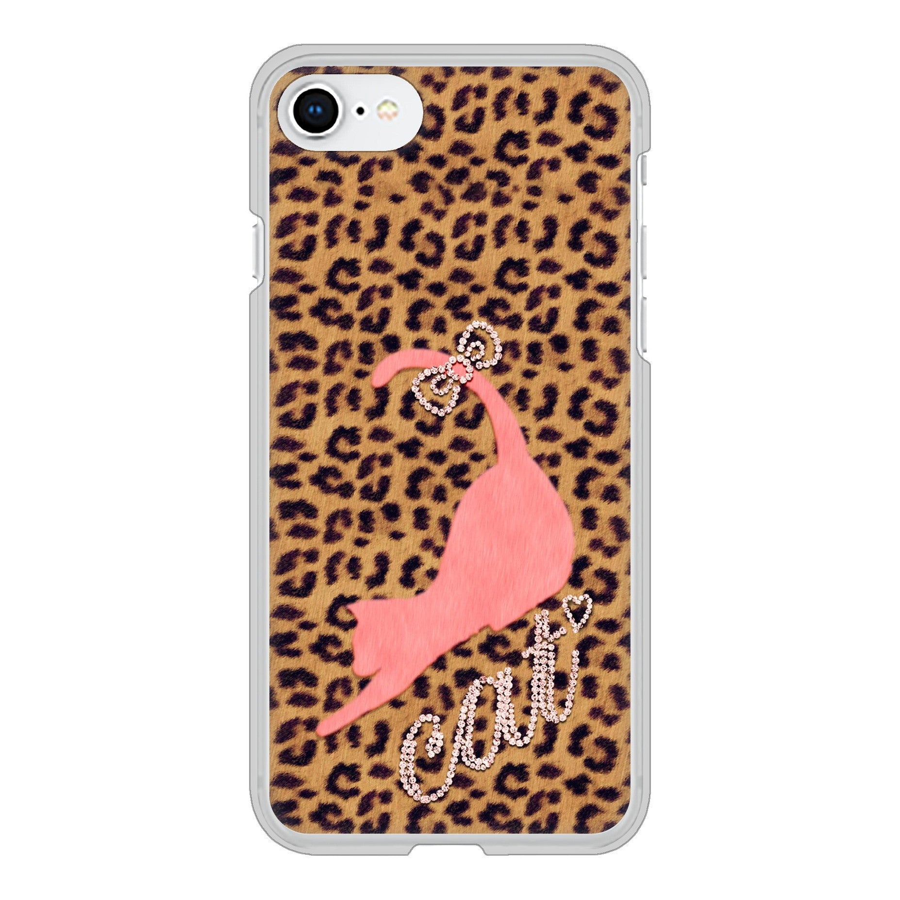 iPhone SE (第2世代) 高画質仕上げ 背面印刷 ハードケース 【KG801 キャットレオパード(ブラウン)】