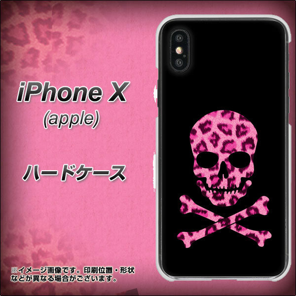 iPhone X 高画質仕上げ 背面印刷 ハードケース【1079 ドクロフレームヒョウピンク】