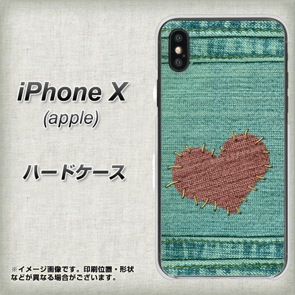 iPhone X 高画質仕上げ 背面印刷 ハードケース【1142 デニムとハート】