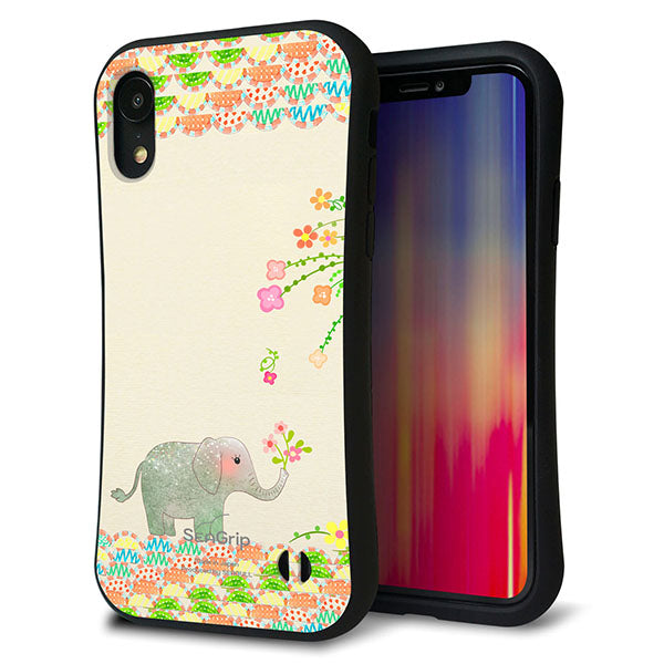iPhone XR スマホケース 「SEA Grip」 グリップケース Sライン 【1039 お散歩ゾウさん】 UV印刷