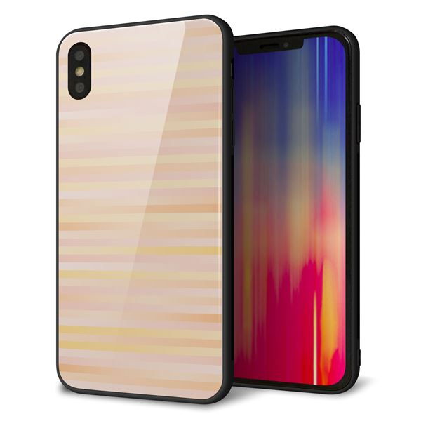 iPhone XS Max 強化ガラス&TPUスマホケース ガラプリ【IB909 グラデーションボーダー_オレンジ】