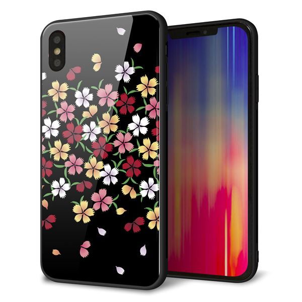 iPhone XS Max 強化ガラス&TPUスマホケース ガラプリ【YJ323 和柄 なでしこ】