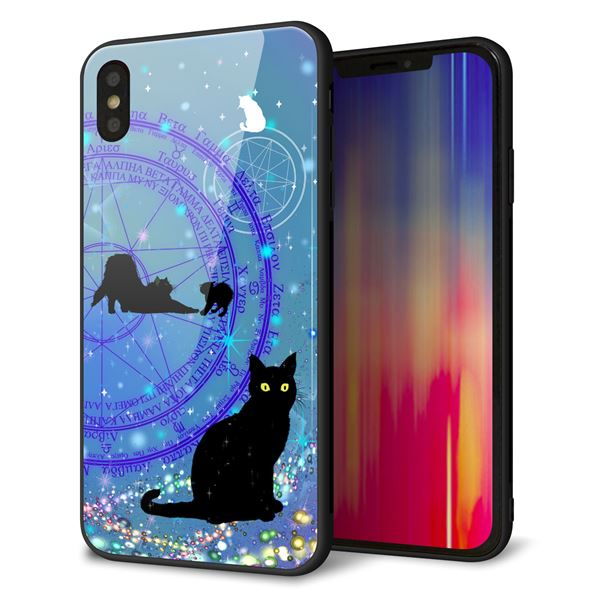 iPhone XS Max 強化ガラス&TPUスマホケース ガラプリ【YJ327 魔法陣猫 キラキラ かわいい】