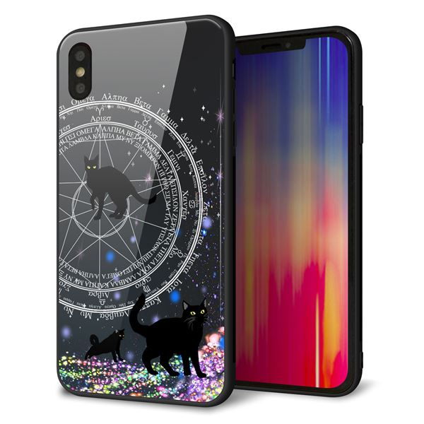 iPhone XS Max 強化ガラス&TPUスマホケース ガラプリ【YJ330 魔法陣猫 キラキラ 黒猫】