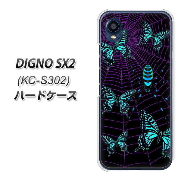 DIGNO SX2 KC-S302 高画質仕上げ 背面印刷 ハードケース【AG830 蜘蛛の巣に舞う蝶(青)】