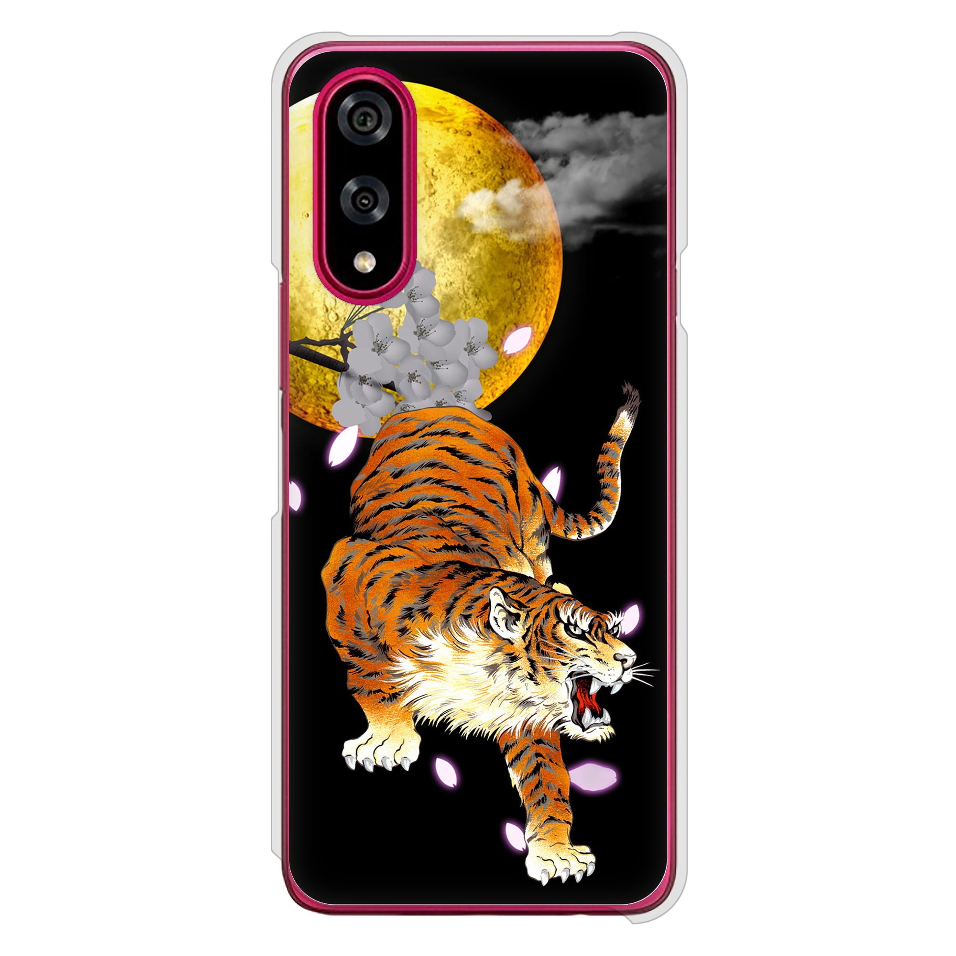 BASIO active3 KYG04 au 高画質仕上げ 背面印刷 ハードケース月とタイガー