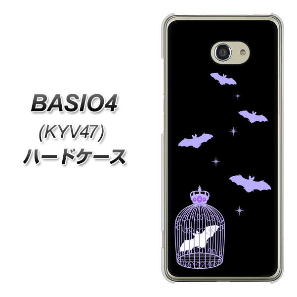 au ベイシオ4 KYV47 高画質仕上げ 背面印刷 ハードケース【AG810 こうもりの王冠鳥かご(黒×紫)】