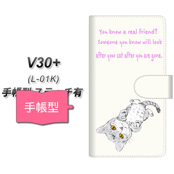 V30+ L-01K docomo サイレントキャット プリント手帳型ケース 耐衝撃