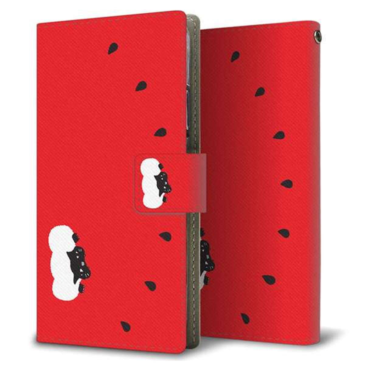 au イサイ V30+ LGV35 画質仕上げ プリント手帳型ケース(薄型スリム)【IA812 すいかをかじるネコ】