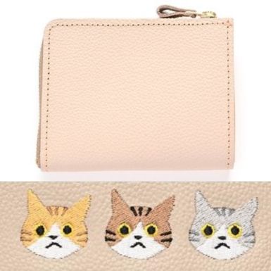 シマエナガとネコ マチあり L字ファスナー コインケース 【 シュリンクレザー 刺繍 】 本革 財布 ミニウォレット 姫路レザー