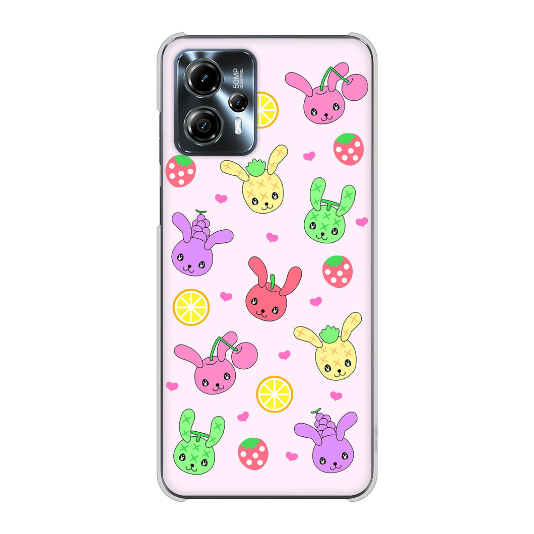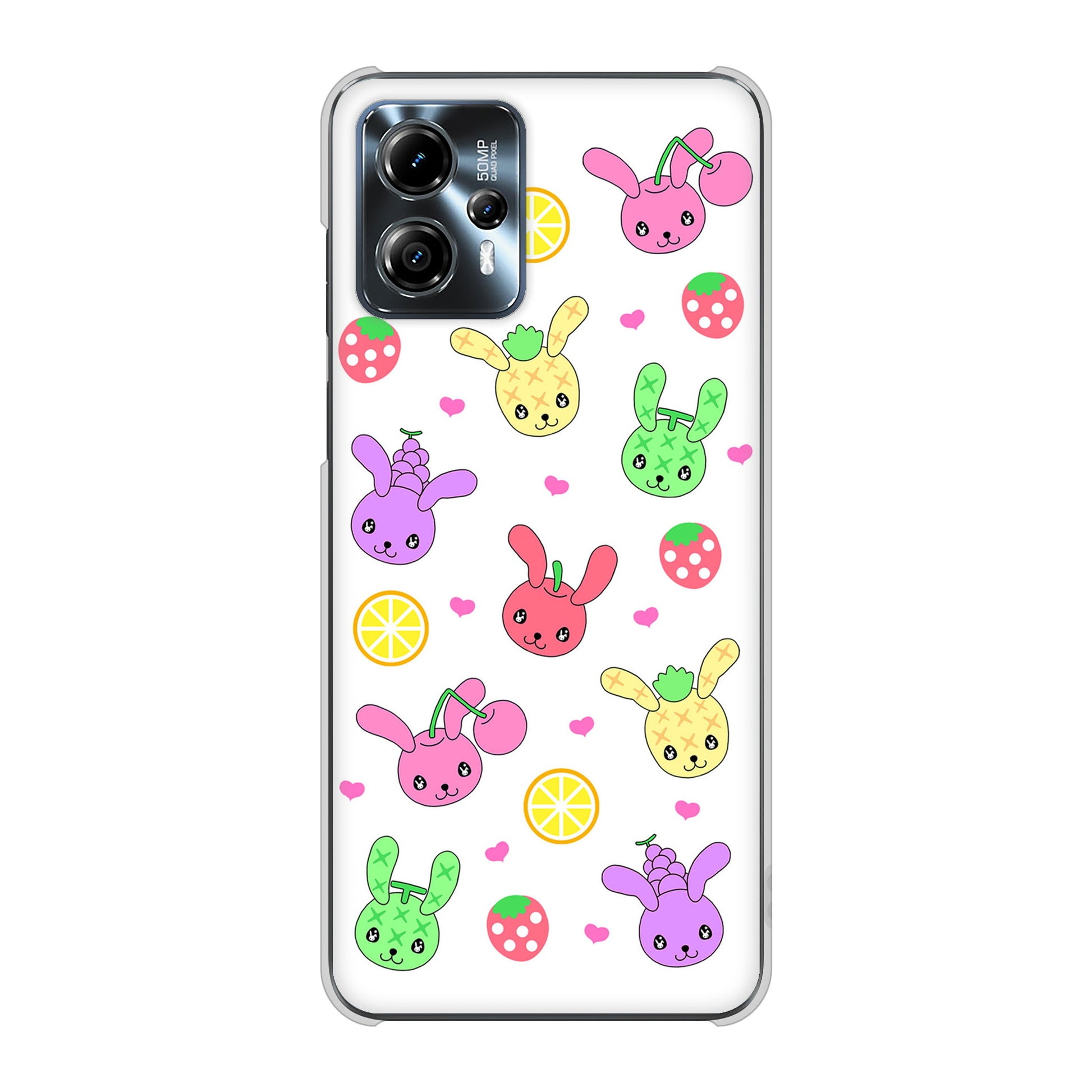 moto g13 高画質仕上げ 背面印刷 ハードケースむかいあぐる フルーツうさぎのブルーラビッツ