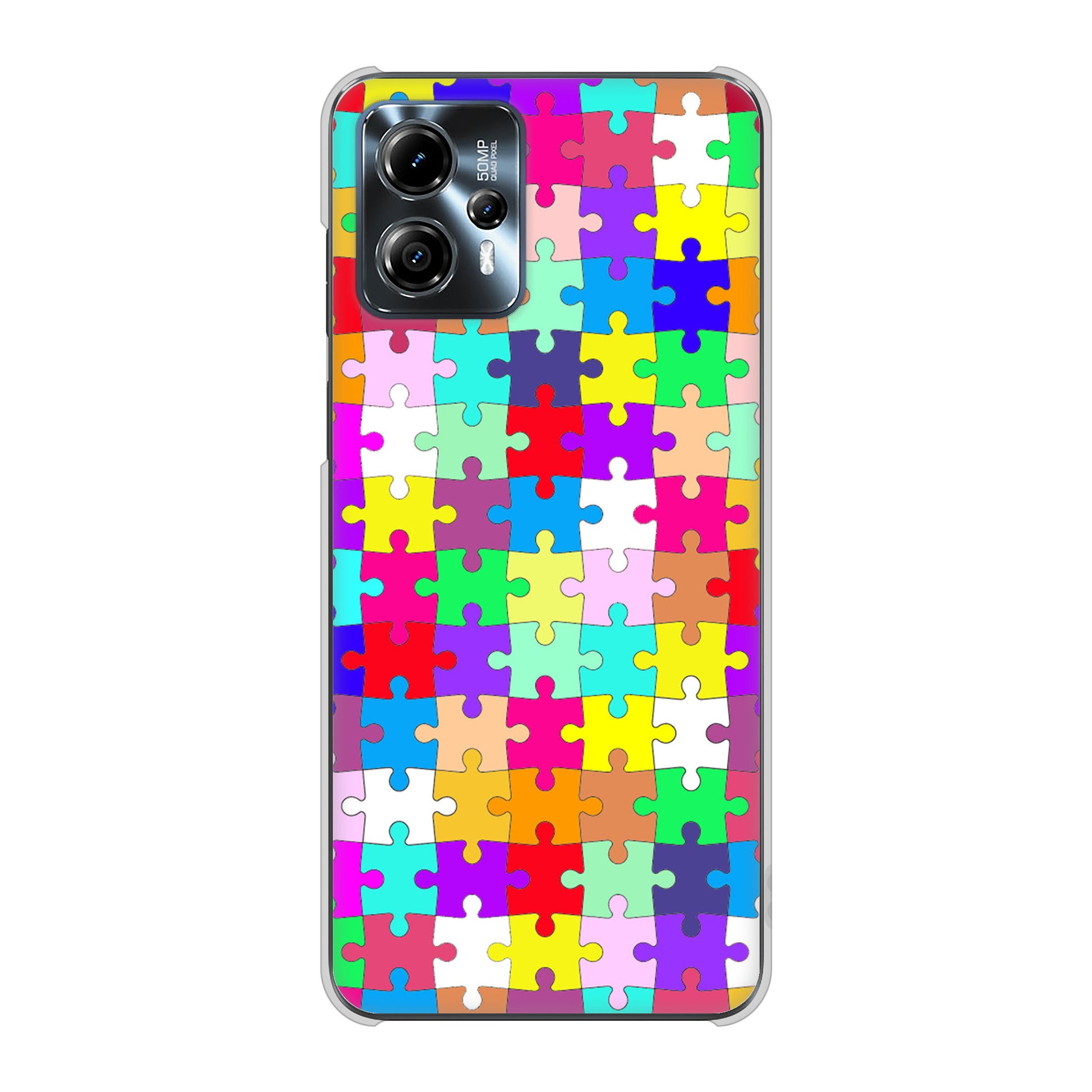 moto g13 高画質仕上げ 背面印刷 ハードケース 【727 カラフルパズル】