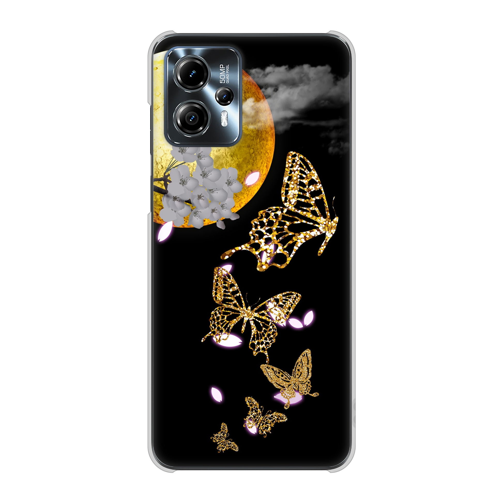 moto g13 高画質仕上げ 背面印刷 ハードケース 【1150 月に昇る蝶】