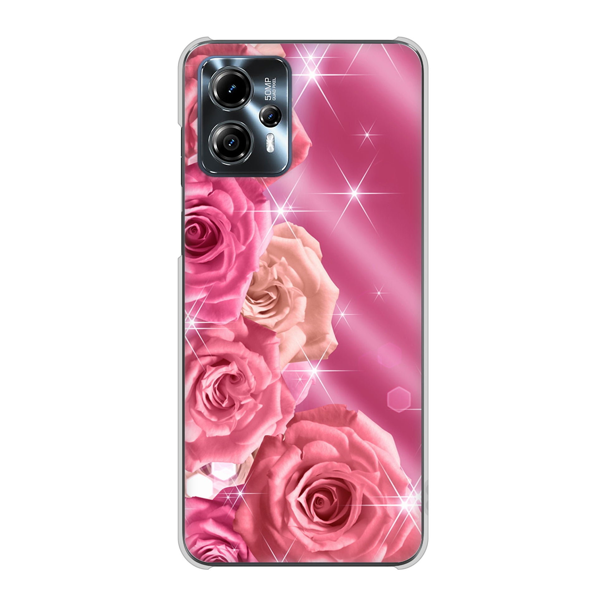 moto g13 高画質仕上げ 背面印刷 ハードケース 【1182 ピンクの薔薇に誘われて】