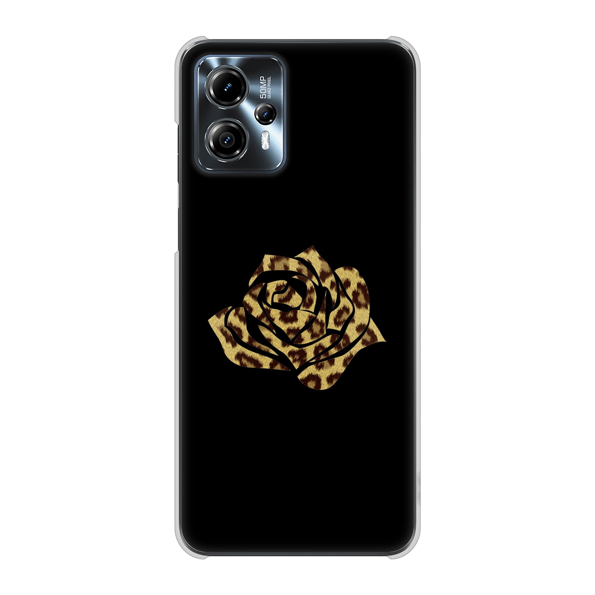 moto g13 高画質仕上げ 背面印刷 ハードケース 【1184 ヒョウのバラ(茶)】