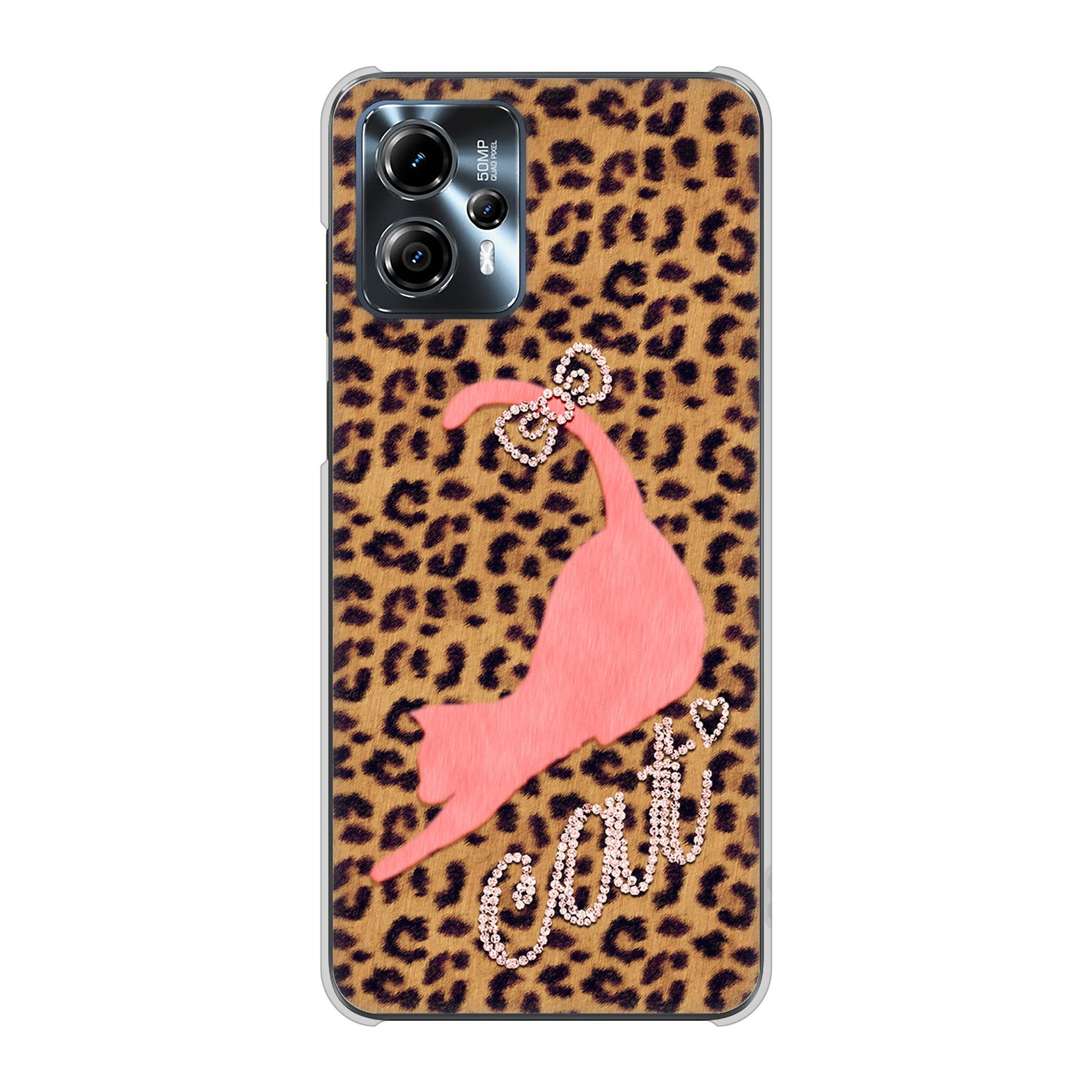 moto g13 高画質仕上げ 背面印刷 ハードケース 【KG801 キャットレオパード(ブラウン)】