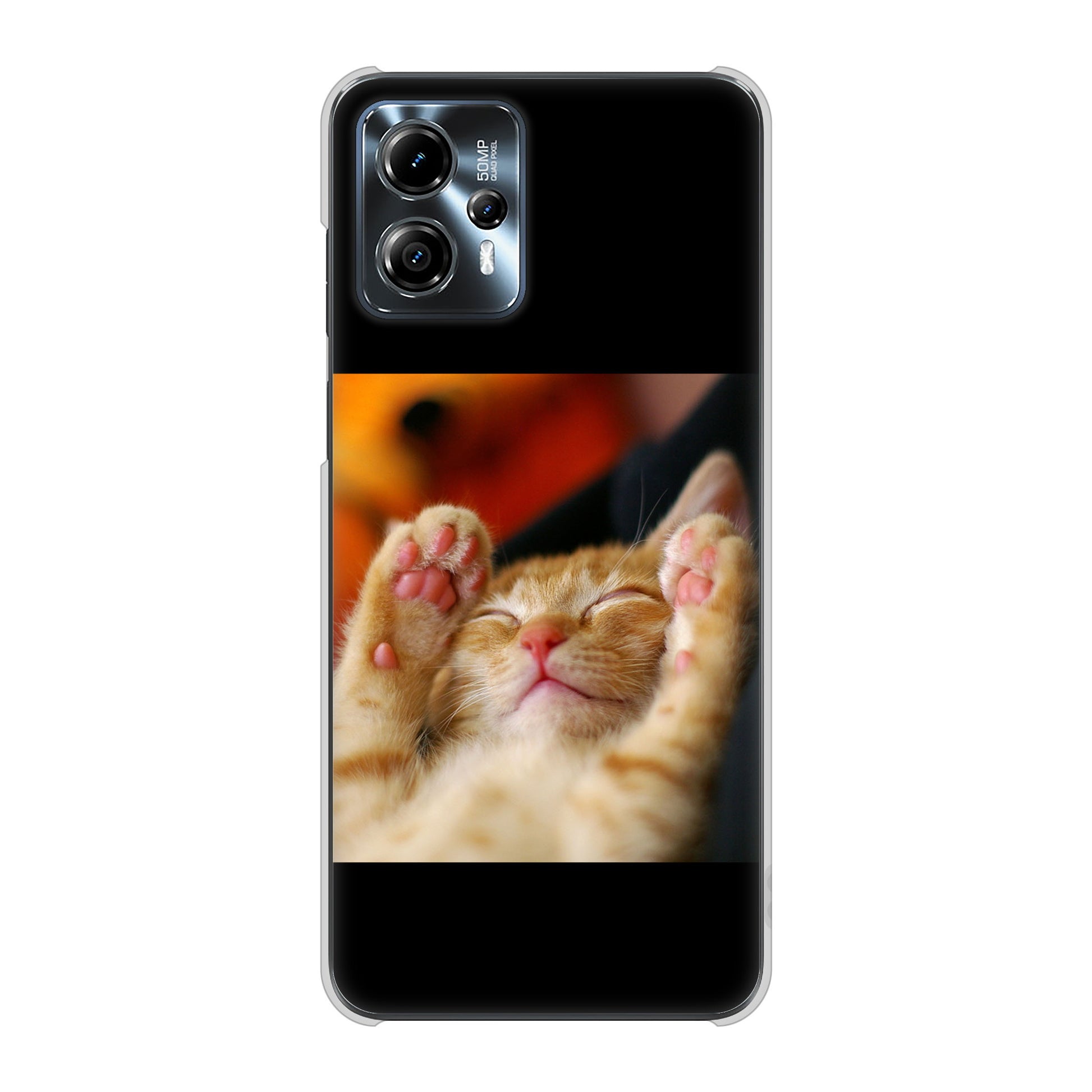 moto g13 高画質仕上げ 背面印刷 ハードケース 【VA804 爆睡するネコ】