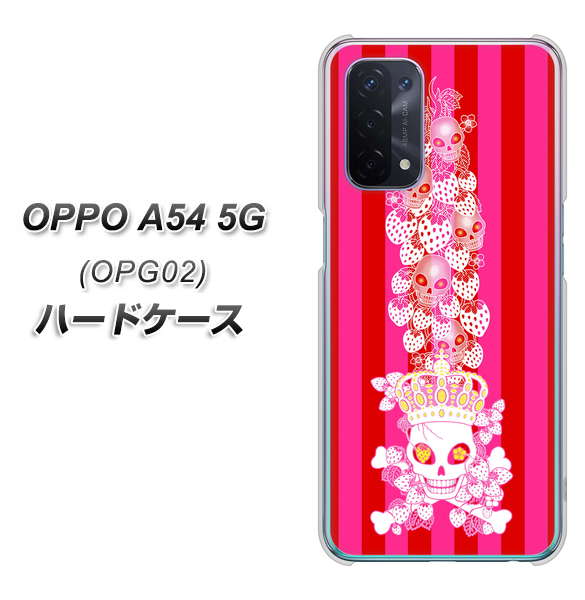 au オッポ A54 5G OPG02 高画質仕上げ 背面印刷 ハードケース【AG803 苺骸骨王冠蔦(ピンク)】
