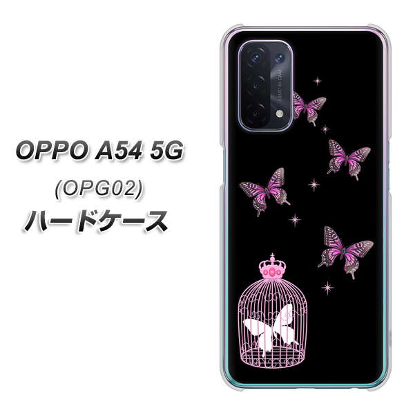 au オッポ A54 5G OPG02 高画質仕上げ 背面印刷 ハードケース【AG811 蝶の王冠鳥かご(黒×ピンク)】