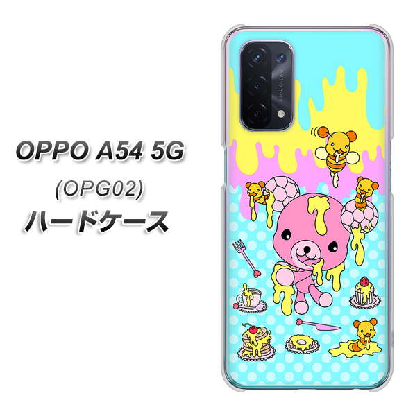 au オッポ A54 5G OPG02 高画質仕上げ 背面印刷 ハードケース【AG821 ハニベア(水玉水色)】