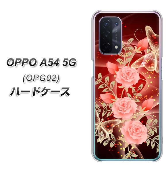 au オッポ A54 5G OPG02 高画質仕上げ 背面印刷 ハードケース【VA824 魅惑の蝶とピンクのバラ】