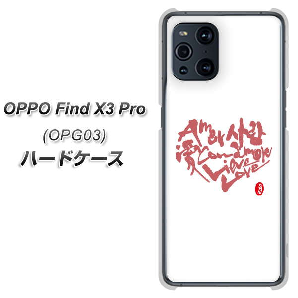au オッポ Find X3 Pro OPG03 高画質仕上げ 背面印刷 ハードケース【OE801 世界の言葉で「愛(ホワイト)」のデザイン筆文字(書道家作品)】