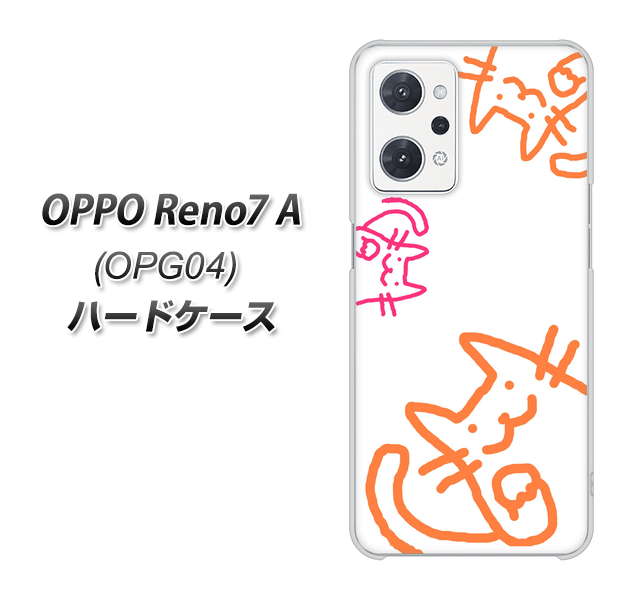 OPPO Reno7 A OPG04 au 高画質仕上げ 背面印刷 ハードケース【1098 手まねきする3匹のネコ】