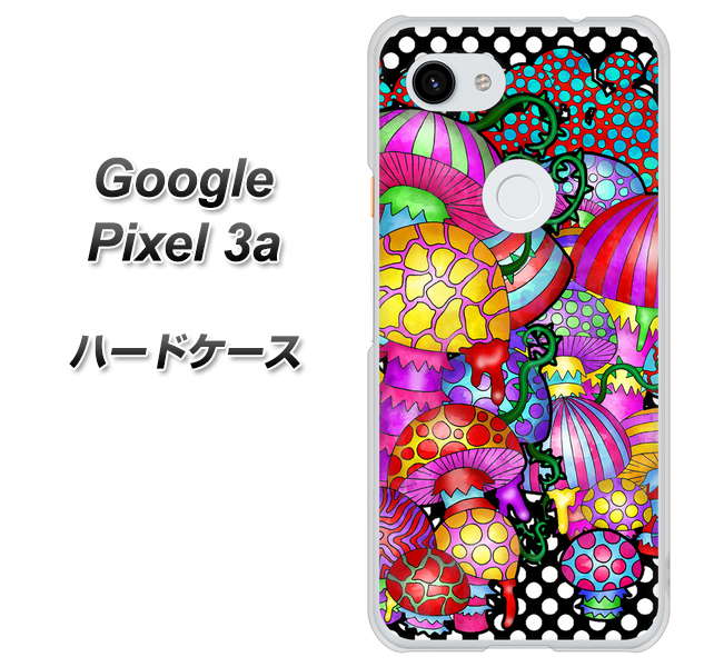 Google Pixel 3a 高画質仕上げ 背面印刷 ハードケース【AG807 きのこ(黒)】