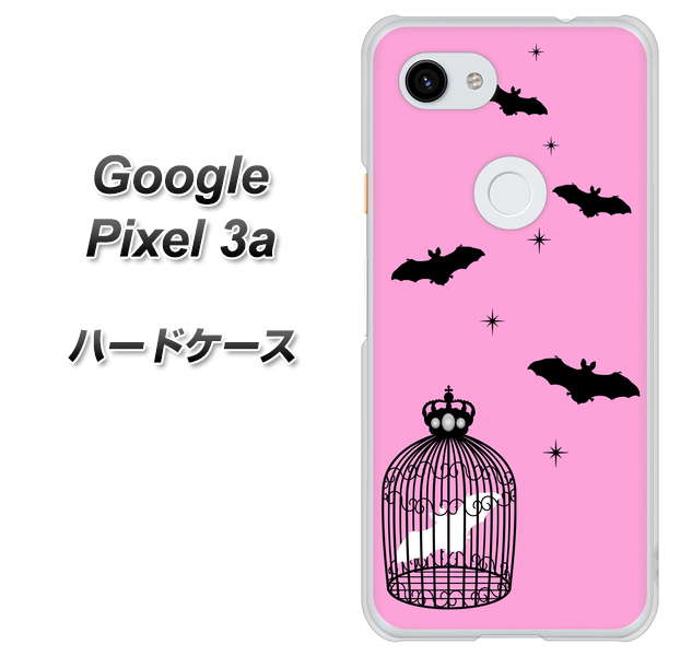 Google Pixel 3a 高画質仕上げ 背面印刷 ハードケース【AG808 こうもりの王冠鳥かご(ピンク×黒)】