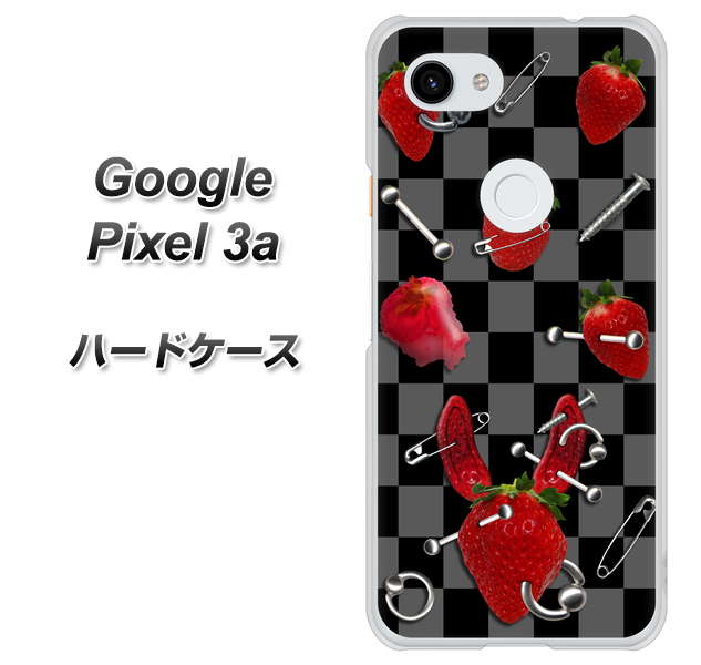 Google Pixel 3a 高画質仕上げ 背面印刷 ハードケース【AG833 苺パンク(黒)】