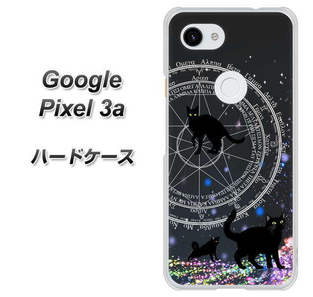 Google Pixel 3a 高画質仕上げ 背面印刷 ハードケース【YJ330 魔法陣猫 キラキラ 黒猫】