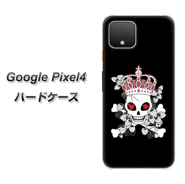 Google Pixel 4 高画質仕上げ 背面印刷 ハードケース【AG801 苺骸骨王冠(黒)】