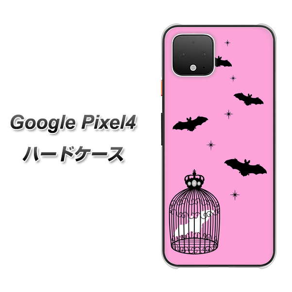 Google Pixel 4 高画質仕上げ 背面印刷 ハードケース【AG808 こうもりの王冠鳥かご(ピンク×黒)】