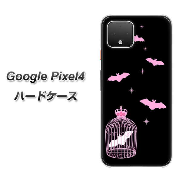 Google Pixel 4 高画質仕上げ 背面印刷 ハードケース【AG809 こうもりの王冠鳥かご(黒×ピンク)】