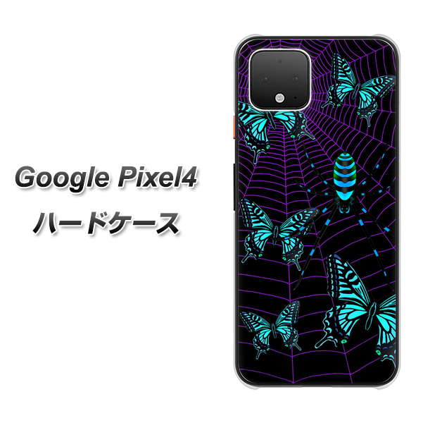Google Pixel 4 高画質仕上げ 背面印刷 ハードケース【AG830 蜘蛛の巣に舞う蝶(青)】